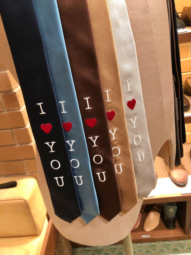 2/14(月)のバレンタインデー。3Fのドレスフロアではやはりギフトでは王道のネクタイがオススメでしょうか。