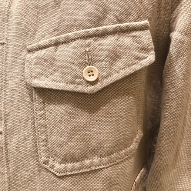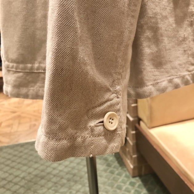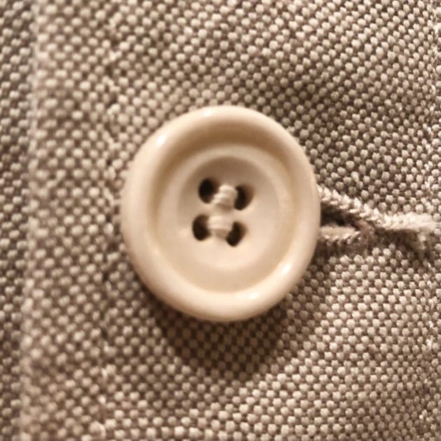ボタンはフロントは20mm、胸ポケットボタンは15mm、袖口ボタンは18mmとパーツによって大きさを変えています。