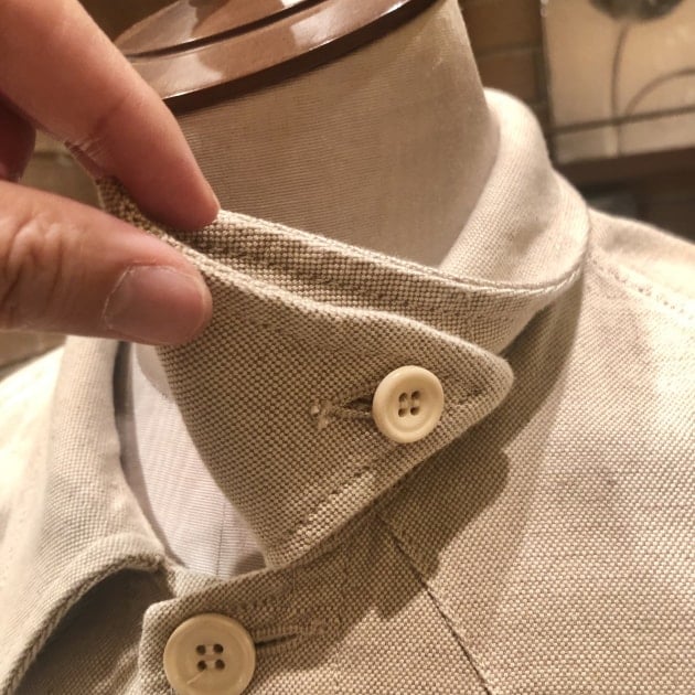 ボタンを留めて、襟を立てる事が出来ます。