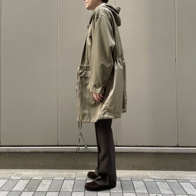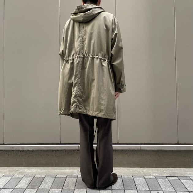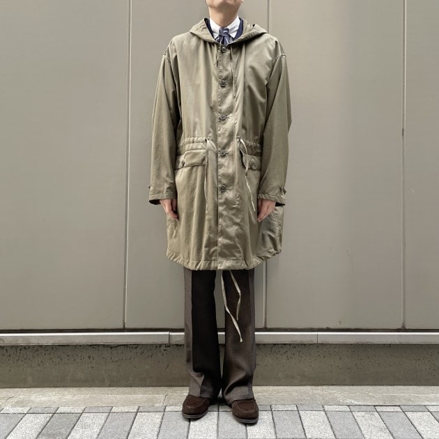 90年代イギリス軍のカモフラージュスケルトンフードコートをベースに、素材、シルエットを現代的に解釈して作られた1着です。