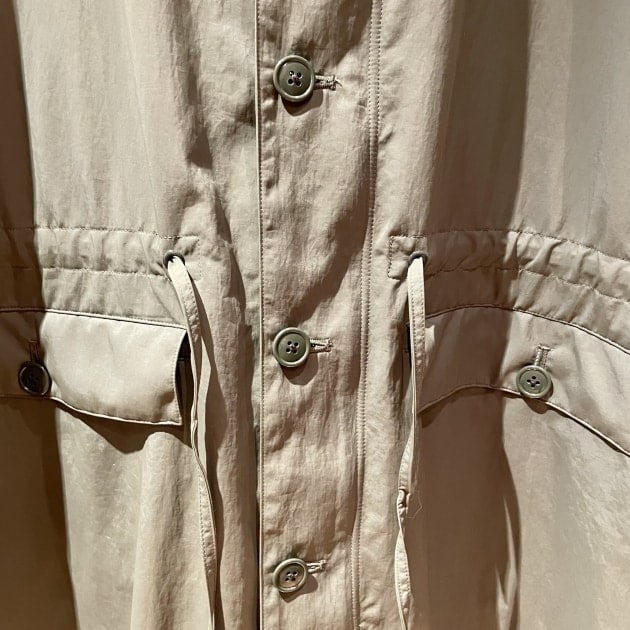 ライニングも無く、薄手な素材なので、気軽にサラッと羽織れるコートです。
