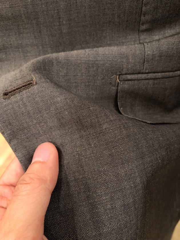モヘヤ特有の清涼感とやや光沢のある生地感に加えて、グレーとブラウンを混ぜたようなニュアンスカラー的な色合いが目を引く一着となっております。