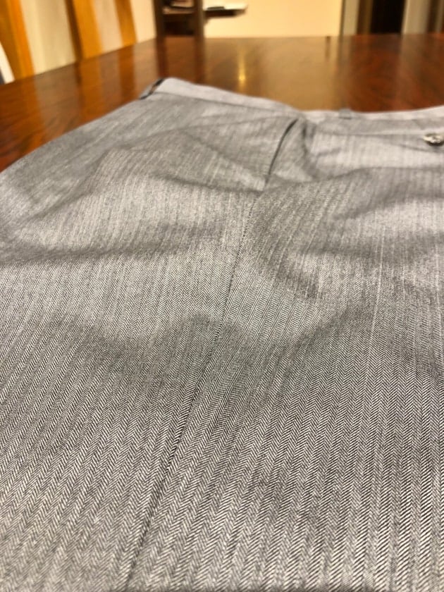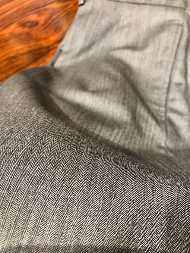 入荷する前のはもっとしっかり柄が浮き出る感じをイメージしておりましたが、実際は控えめに入ったヘリンボーン柄で