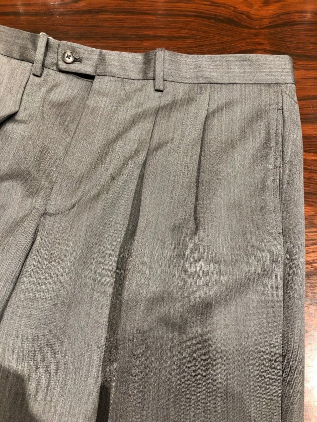 BERNARD ZINS / ウール ヘリンボーン 2プリーツ ワイドスラックス