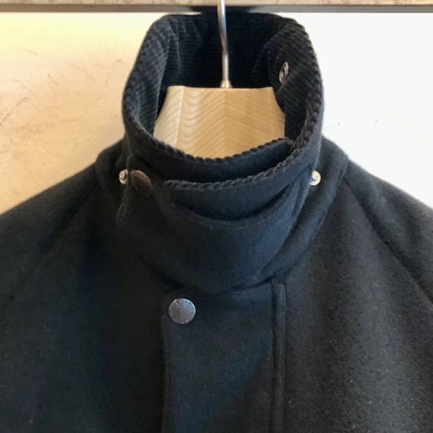 襟には細畝のコーデュロイが付き、ベース素材とのコントラストが良い雰囲気を醸し出します。
