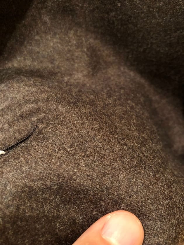 柔らかく滑らかなタッチが特徴のフランネルですが、過去に購入したある同素材のスーツがすぐに裂けてしまい個人的には敬遠しておりましたが、英国的なハリやコシがある事によりシワになりにくく耐久性がある生地感でそんな心配はなくなりました。
