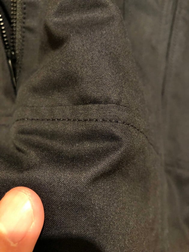 デザインのアクセントにもなるような高い位置までジップが上がりネック部分にしっかりと被さりますので、