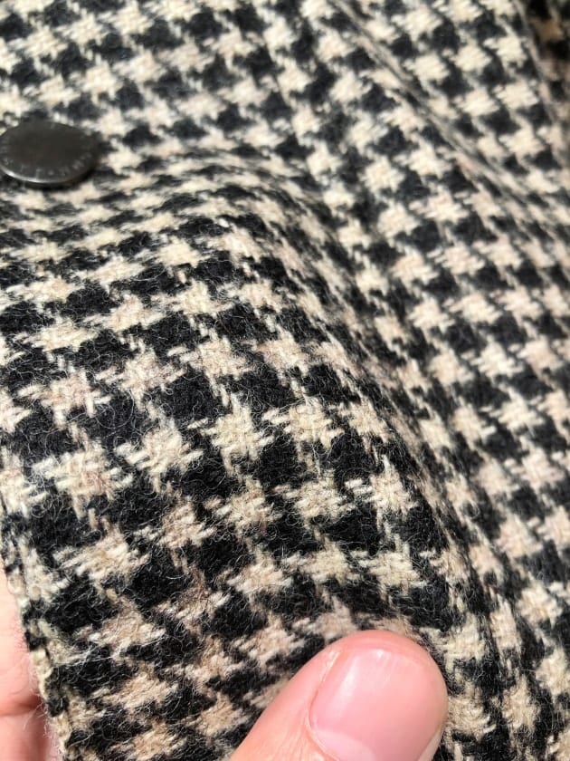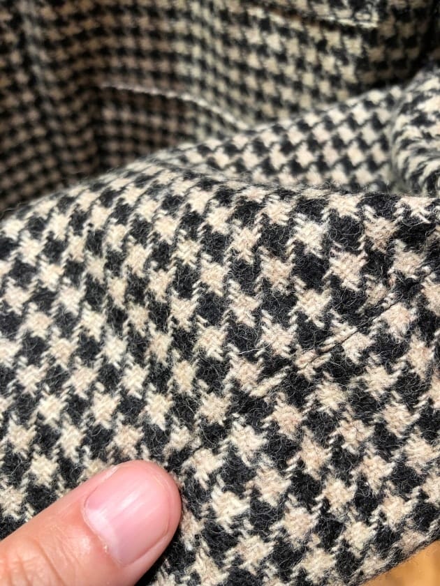 英国〈Mallalieus(マラリウス)〉社のツイーディーなウール生地に、同国らしいガンクラブチェック柄を採用。