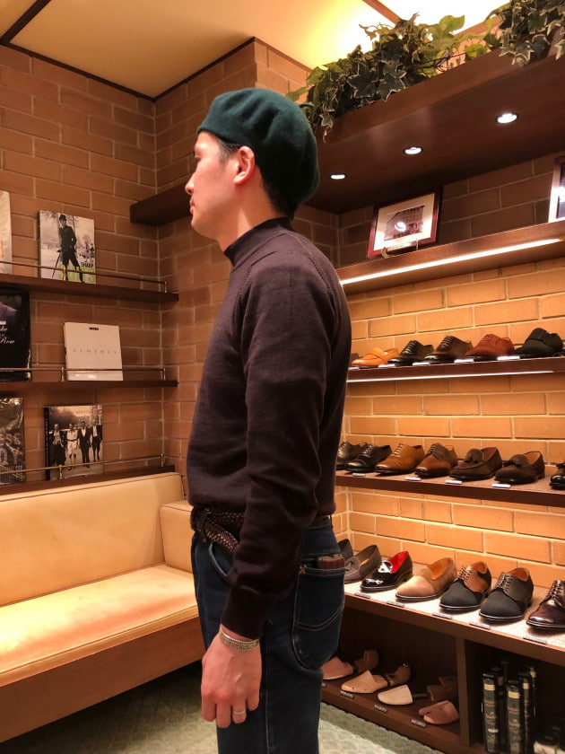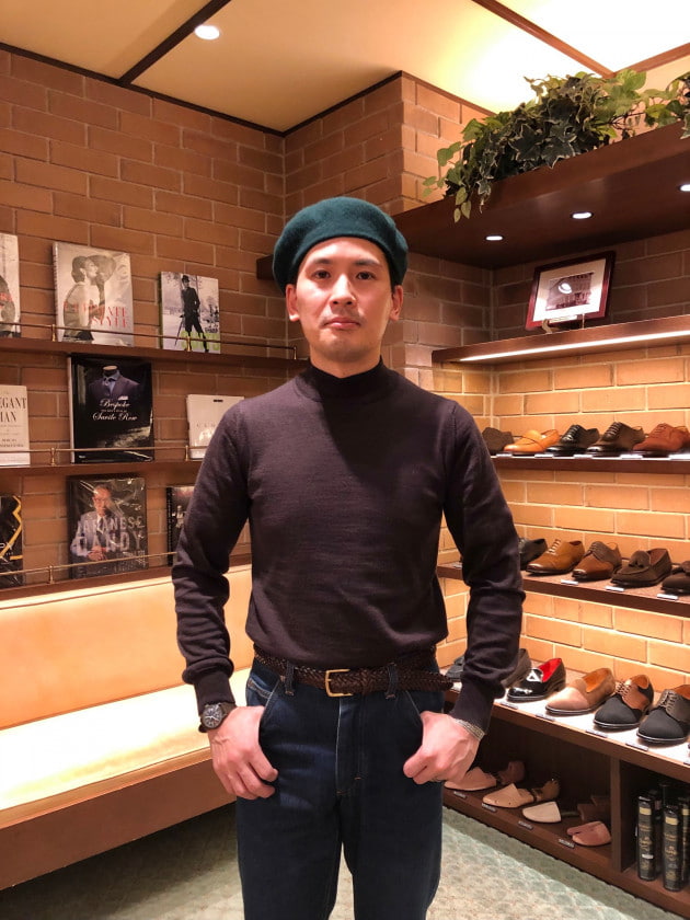 私「クルーネックより着こなしのポイントになりやすく、タートルネック程首が詰まる感じがなく楽な点もモックネックのいい部分ですよね!」