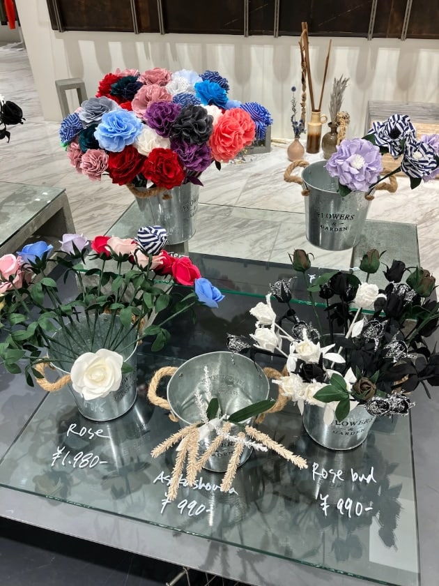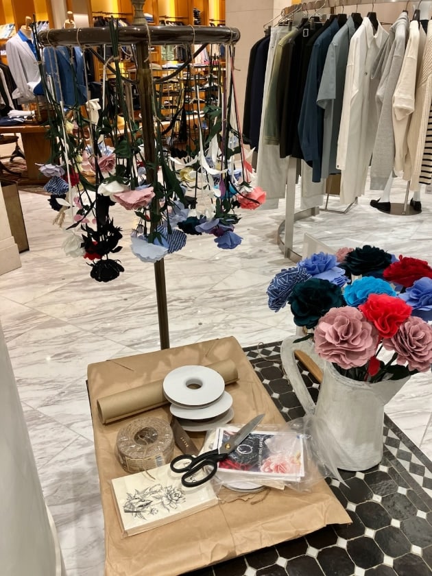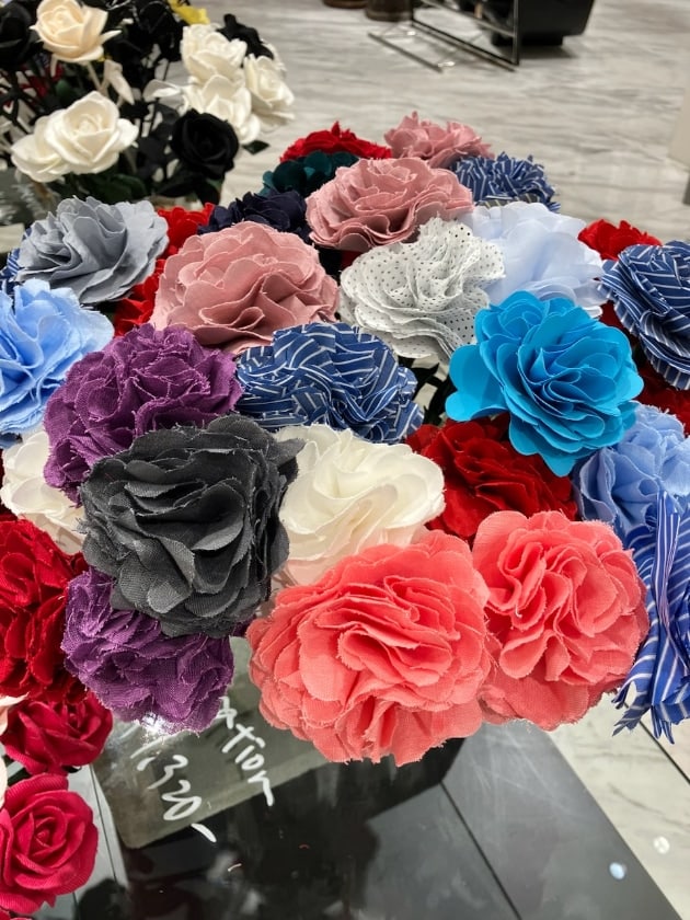 裁断後に余った生地や、洋服として使われる事のない残布を再利用した〈LOVECO(ロベコ)〉のテキスタイルフラワー。