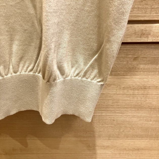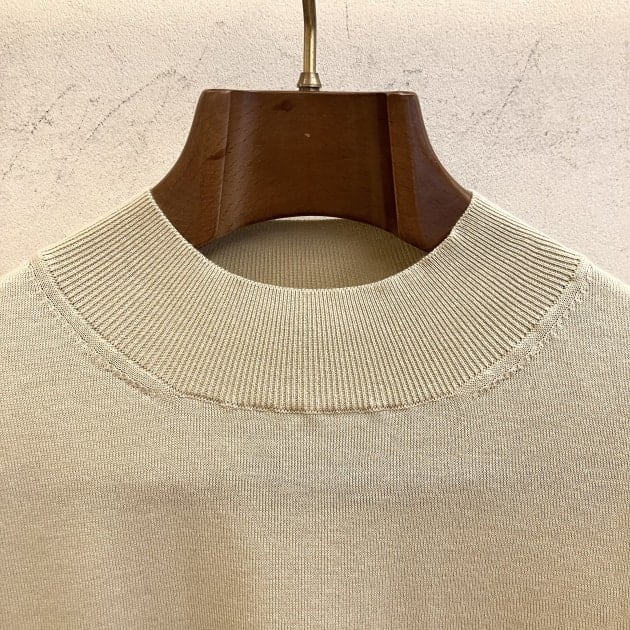 リブは程良いテンションのリブ編みにより、首のラインに沿ってキレイに映ります。