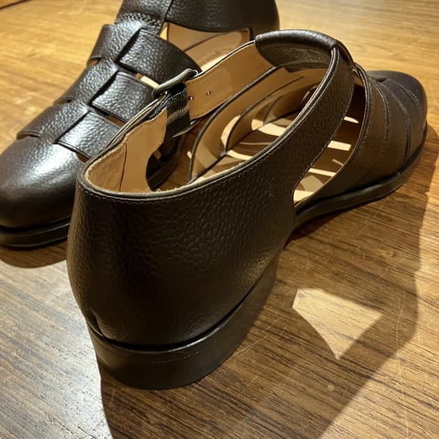 フィッティングについては、ローファーのようなビタビタのサイズ選びではなく、それよりもハーフサイズアップしてストラップで足首を固定するサイズ選びを推奨します。私は<Church's>のBURWOODをUK6.5(ウィズF)で履いていますが、FG166はEU40を着用しており、足の甲が高い方や幅広の方はハーフサイズ上げてEU40.5を選ぶと気持ち良く履けると思います。