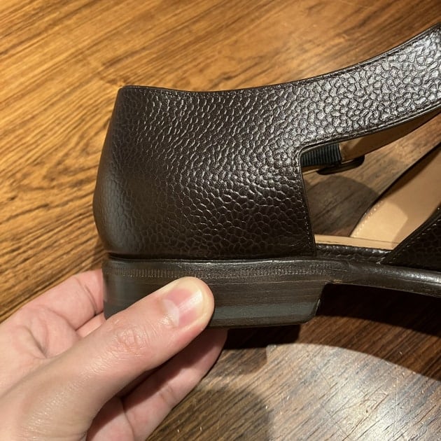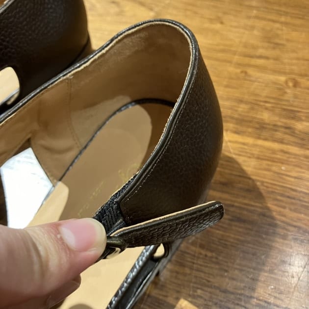 まず見るのは綺麗なエッジ処理。個人差はあると思いますが、私は裸足で履いていてくるぶしが擦れたことはありません。擦れづらい、と肌で感じてますが、どうしても気になる方は無理せずクリームを入れて揉んで角を柔らかくするかソックスを履いて角を馴染ませてください。