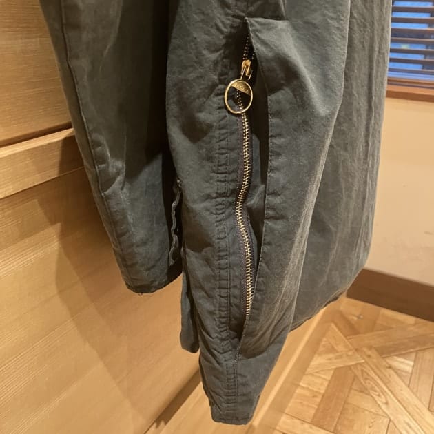 生地のオイルは約60〜70%程カットされており、素材特有のベトつきが少なく、着用しやすくなっております。又、独特の経年変化が表現されており、味わい深い表情です。