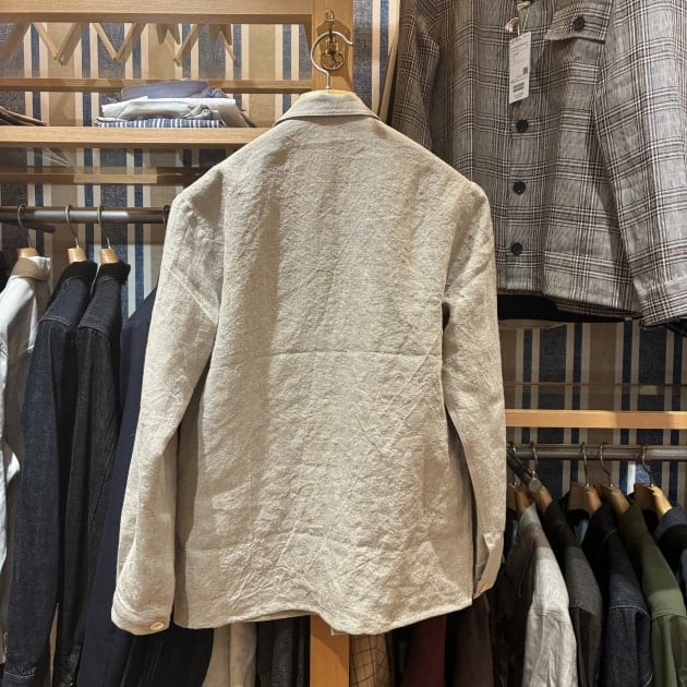 リネン素材を用い、シャツのように軽やかな仕立て、コンパクトなサイズ感の多機能な3パッチポケット。