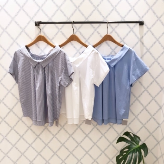 程良く見えるデコルテに、フンワリとしたシルエット、、。涼しげな印象と女性らしさを兼ね備えたアイテムです。