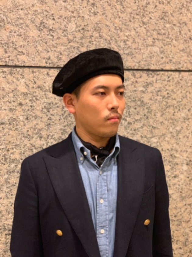 オーダースーツもコーデュロイで作るほど、コーデュロイにハマっている井口ですが、こちらのベレー帽のもつ雰囲気にやられました。