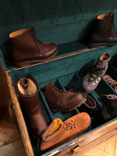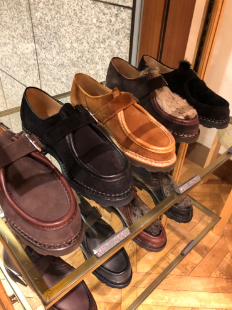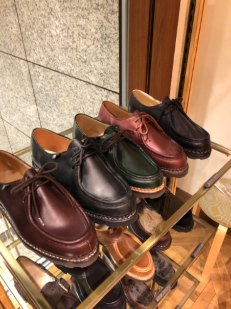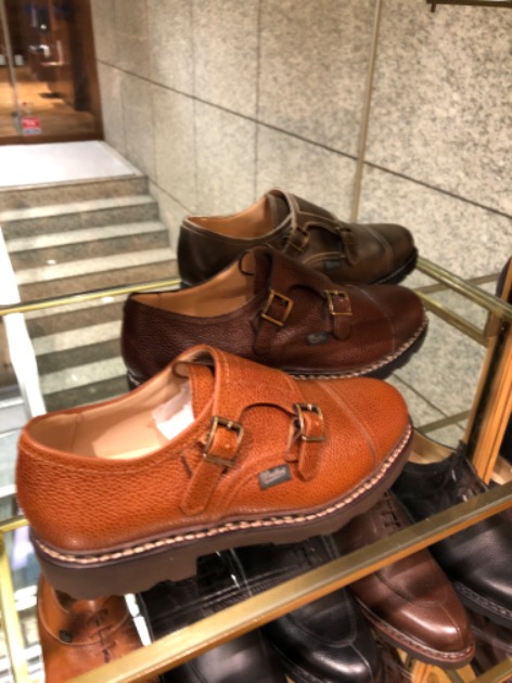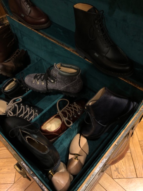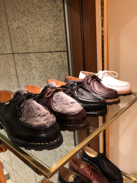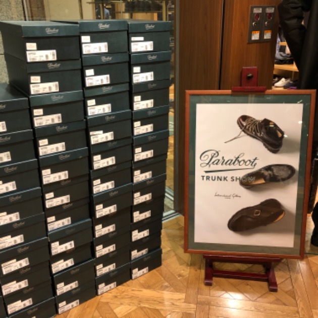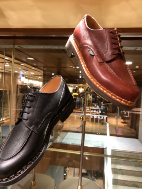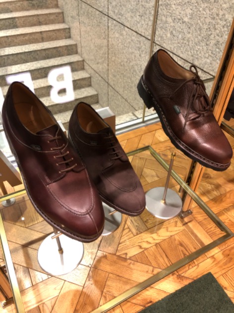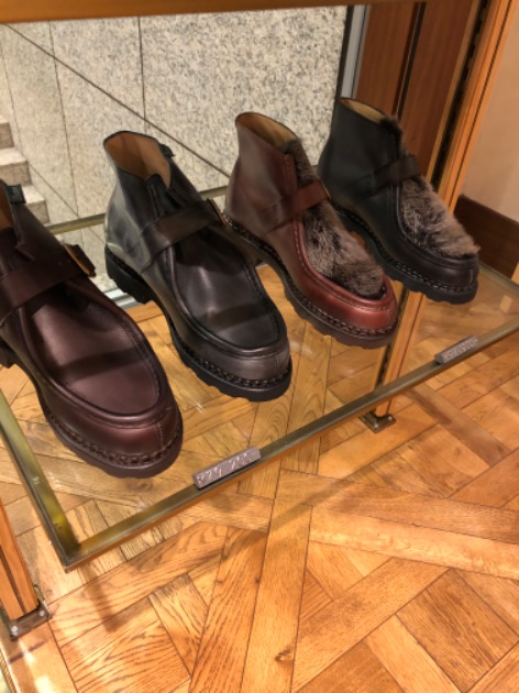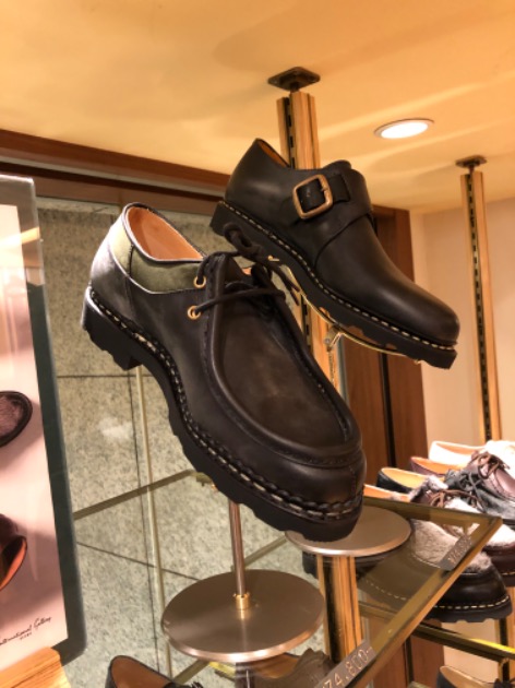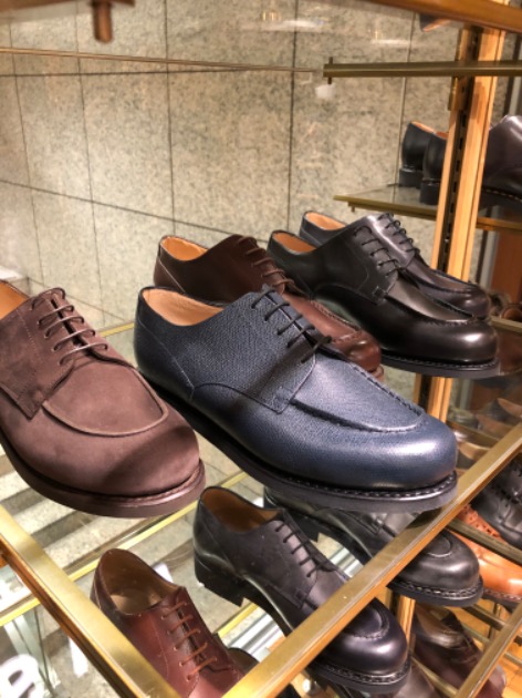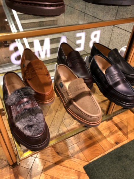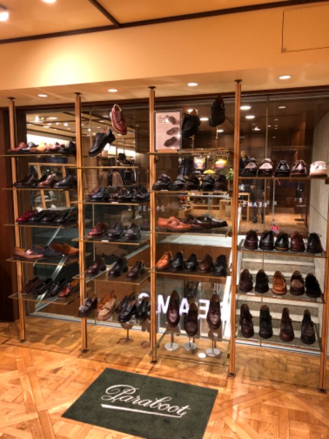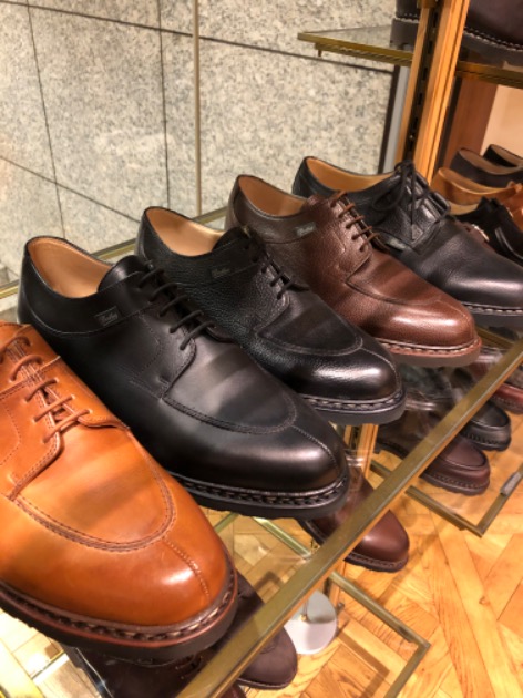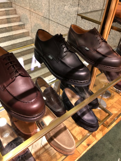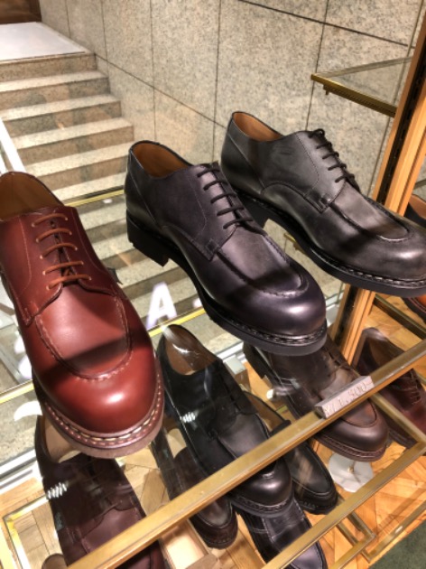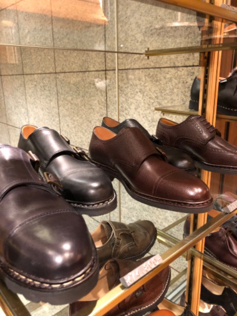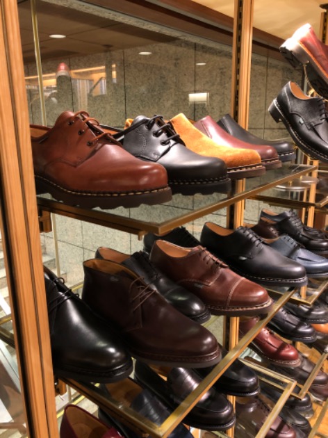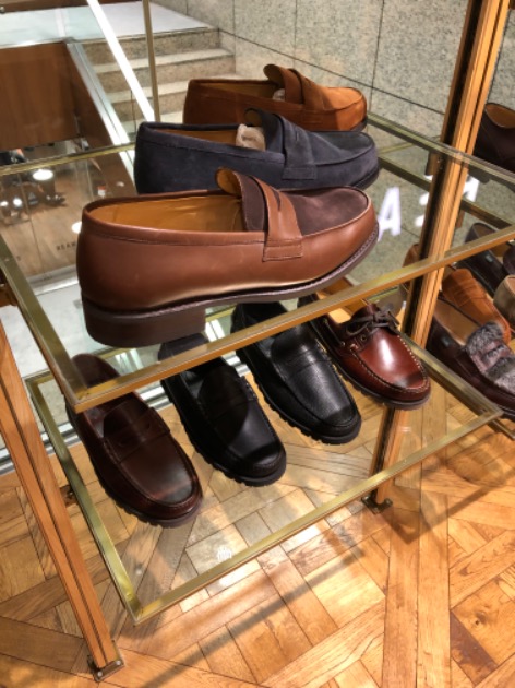 銀座店の中央、カジュアルコーナーでの展開をしておりますが、普段は他のブランドやメーカーのシューズも置いてあるこちらのラック。