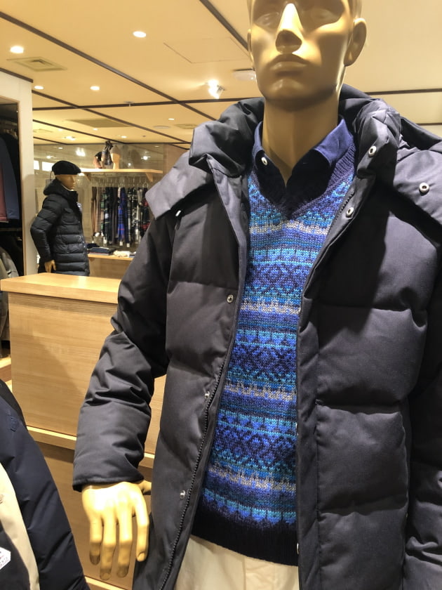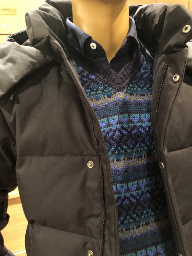 今シーズンは様々なテイストがラインナップしているニットの中からフェアアイル柄を合わせて暖かみをプラス、