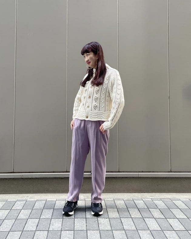 ラベンダーのパンツもRayからの春物です。こちらは少し薄手なので中にタイツを履くと今からも使えます❤︎