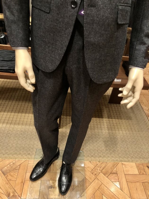 こんなニュアンスのあるスーツで今シーズンオススメのモノトーンスタイルをお試しになってみてはいかがでしょうか?