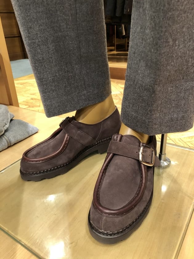 こんな大人のカジュアルスタイルには〈Paraboot(パラブーツ)〉が便利。ダウンのボリューム感にも負けない一足として。