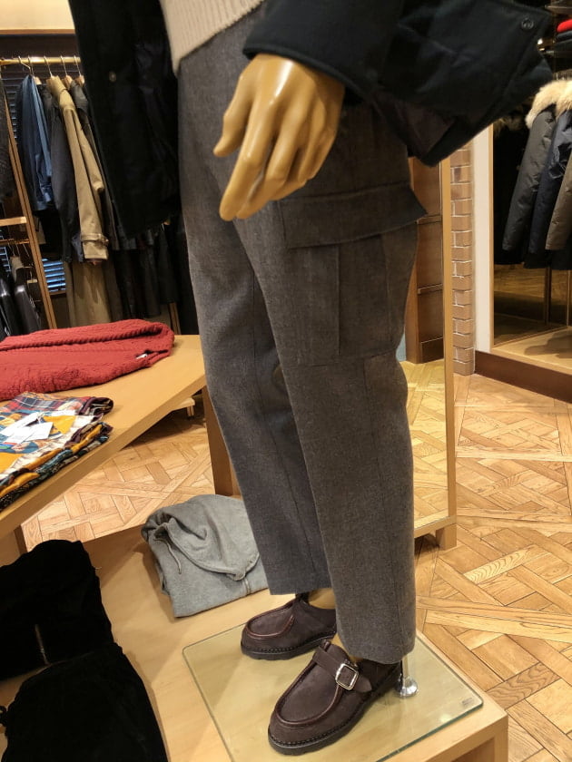 加えて、パンツもウール素材であわせて。ただカジュアルスタイルなのでトップスのアウトドアテイストにこちらはミリタリーテイストで。