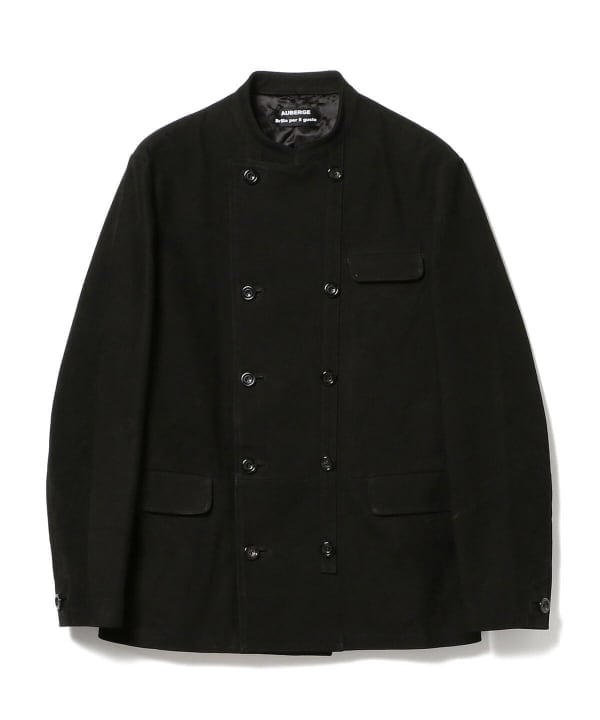 インナーにタートルネックを着て、フロントボタンを全て留める、少しクセありな着方で。