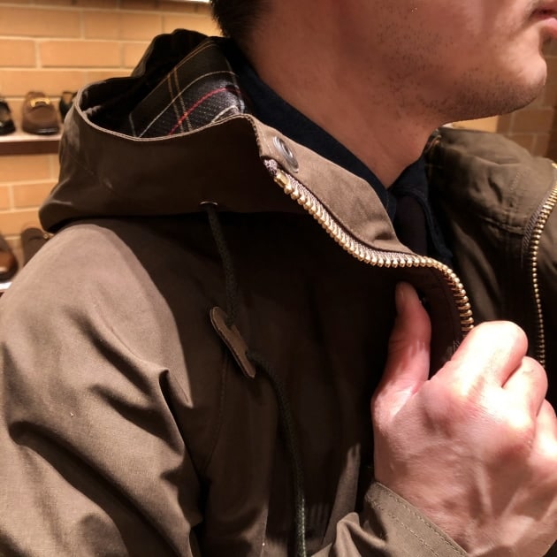 時折吹く風の侵入を防ぐ高めのネック部分や、裏地のタータンチェック柄が着こなしのアクセントに。