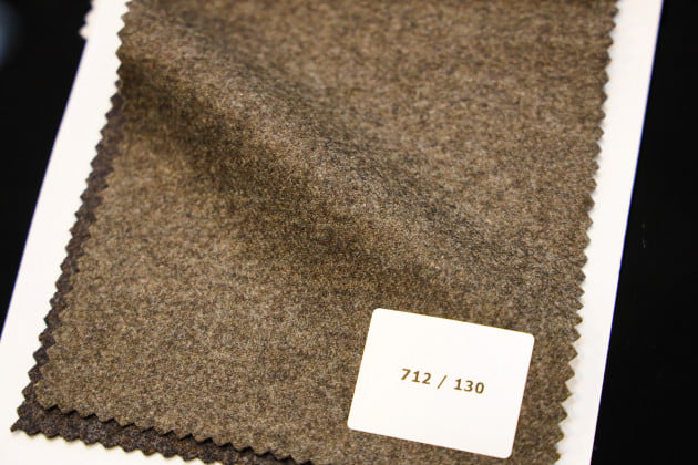 西口「薄いブラウンの生地なんですが、白っぽい糸もミックスされていて生地の表情が豊かなのも選んだポイントですね。」