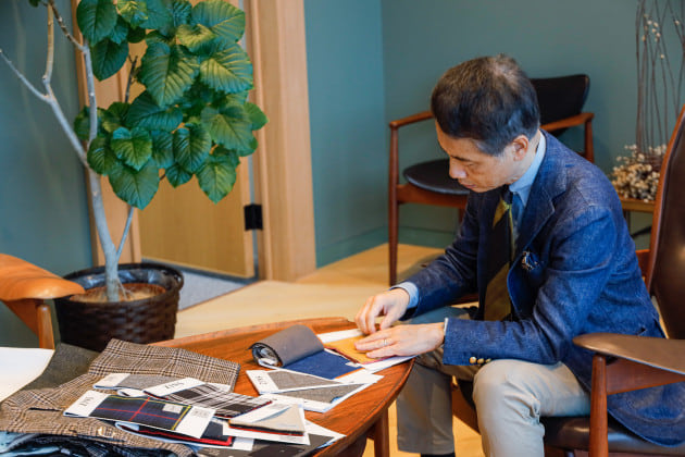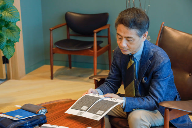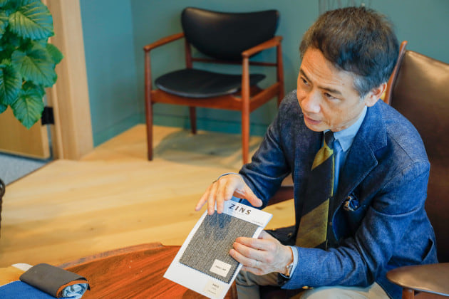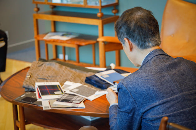 中村「次の秋冬の柄のトレンドのひとつがヘリンボーンなので、このヘリンボーンツイードの生地がいいかな。」