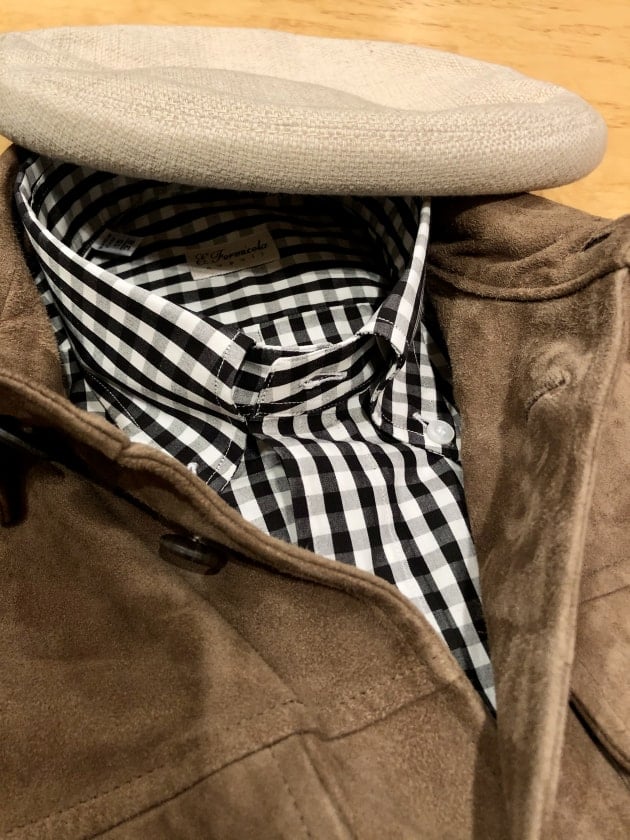インナーには、〈ERRICO FORMICOLA〉のギンガムチェックボタンダウンシャツ。