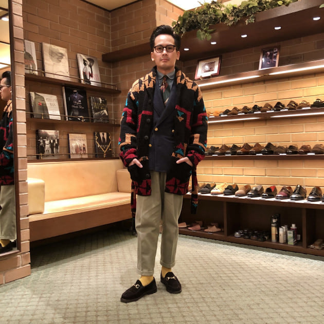 まだ記憶に新しい同レーベルディレクター西口が着用していた事でお馴染み同レーベルのネイティブ柄のニットブルゾンの新作となっております。