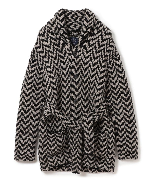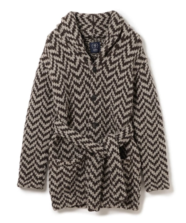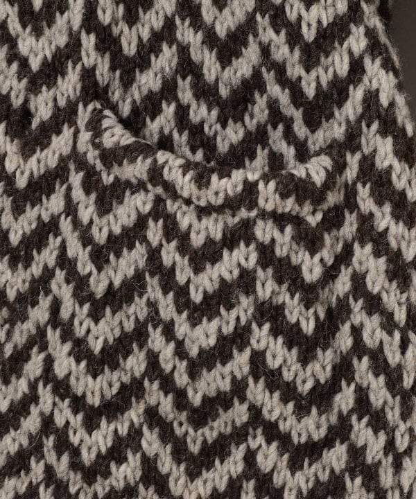 【予約】BEAMS F ヘリンボーンショールカラー ニットブルゾン