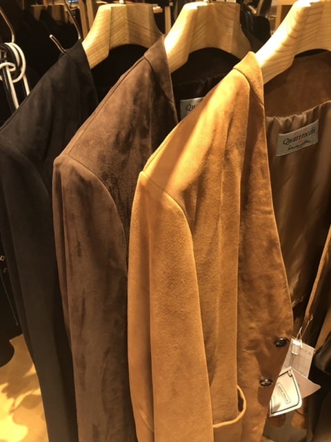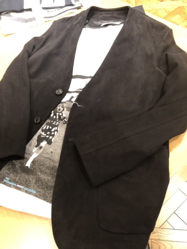 ノーカラーのゴートスエードジャケット。ごぞってスタッフも着用してるヤツです。うちの店だけでも3人購入してます。