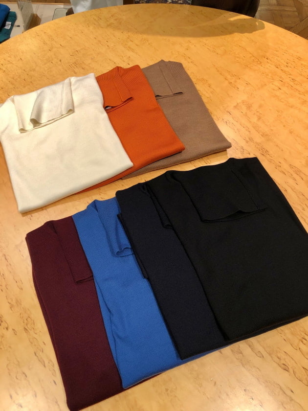 秋冬のコーディネートには欠かせないタートルネックニットはクルーネックニット同様に豊富な色バリエーションをご用意。
