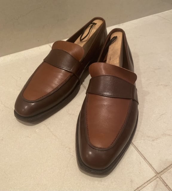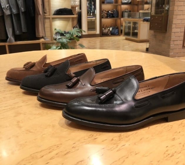 ウチの新人スタッフはとりあえずで入社したらこのモデルを履いているのが風物詩みたいになりましたね。面識なくても都内の通勤電車で少し派手目のスーツやチェックのジャケットを着て、ペイズリーのネクタイなんかで素足ばきで髪型は少し長めで何ならウェーブのかかったパーマヘアでこのタッセルシューズを履いてる若い子がいたら大体はウチの若手ドレススタッフか他社のセレクトショップスタッフですよね笑