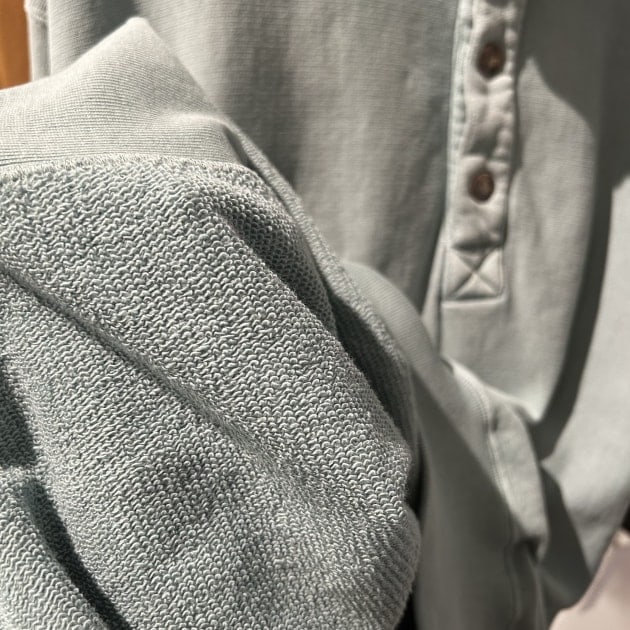 表地は古い年代のスエットの特徴でもある、縦筋感のある米綿の裏毛を使用。