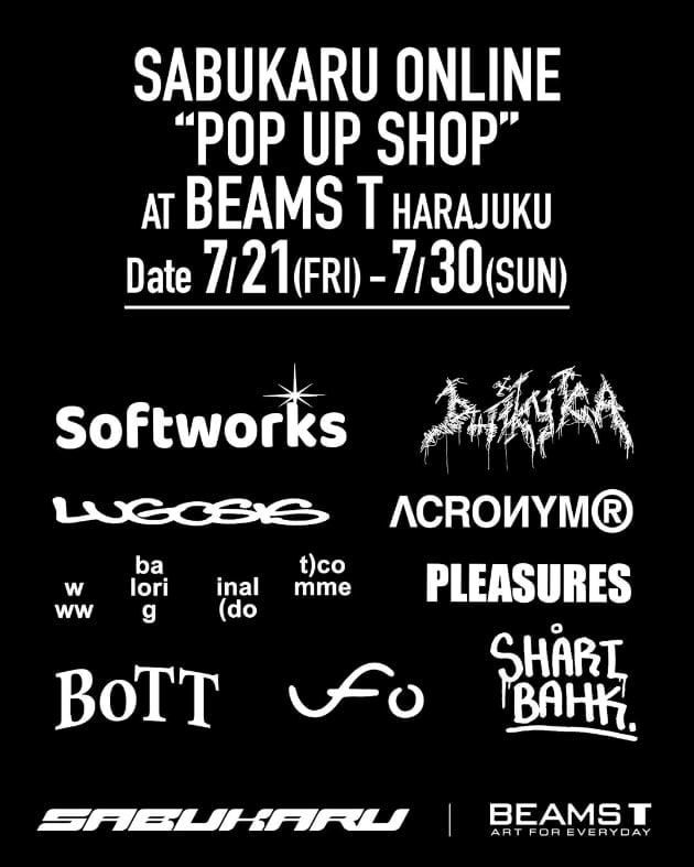 オンラインメディアコレクティブ 『sabukaru online』キュレーションによる9組のアーティスト・ブランドによる合同展を「ビームスT 原宿」にて7月21日(金)より開催!今回は、『sabukaru online』の掲げる “Past, Present, Future (過去、現在、未来)” をテーマに、すでに世の中に名を轟かせている有名アーティストから若手アーティストまで様々なアーティストを招致しTシャツを製作。またDwiky K.A, lugosis, Softworksが本企画の為に描き下ろした作品の展示・販売も行います。