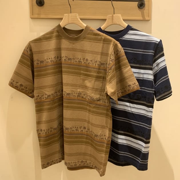 BEAMS PLUS/ジャガード サファリ ボーダー ポケットTシャツ