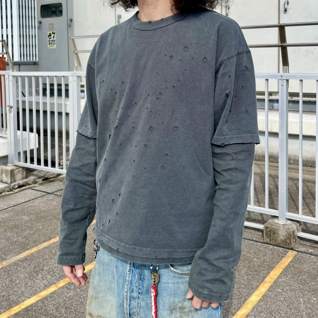 レイヤード ダメージ Tシャツ 【ワイドショートフィット】