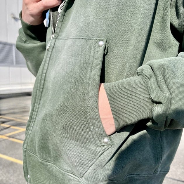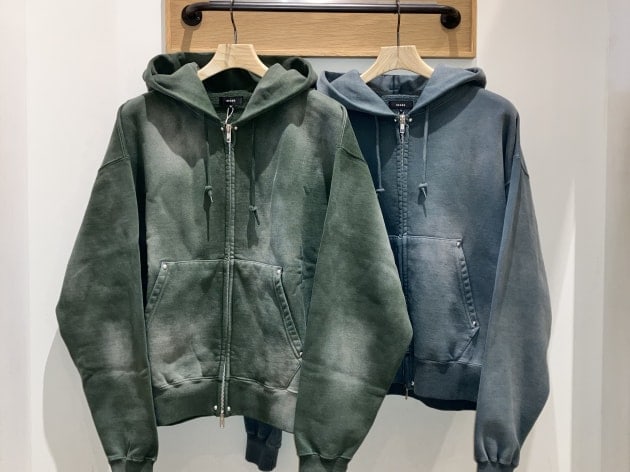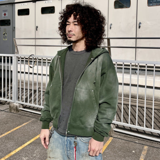 フェード加工がガッツリ施されたジップパーカーで、さりげなくスタッズが付いている所が特徴です!