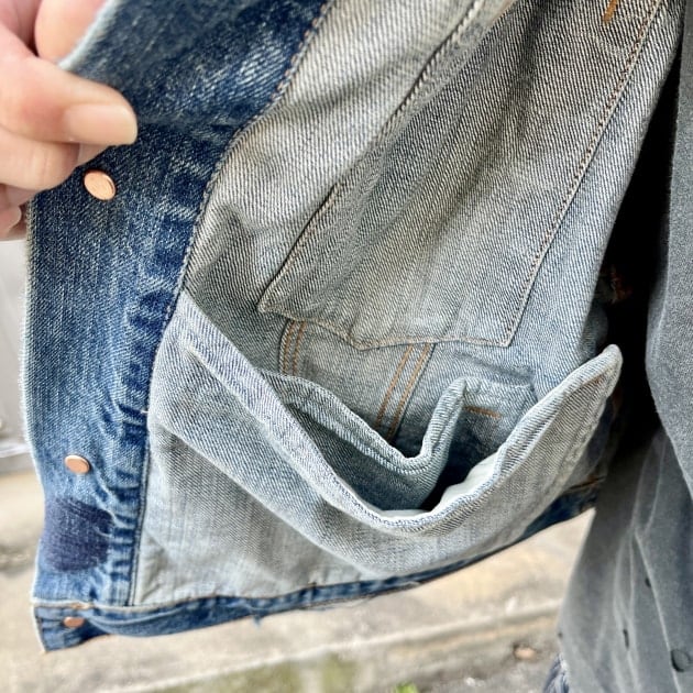 かなり細部にまでこだわっていて、なんといってもこのビンテージを思わせる加工感がとても雰囲気の良い一着となっています。
