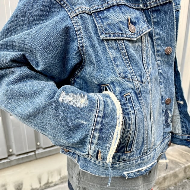 ダメージ デニム ジャケット【ワイドショートフィット】
