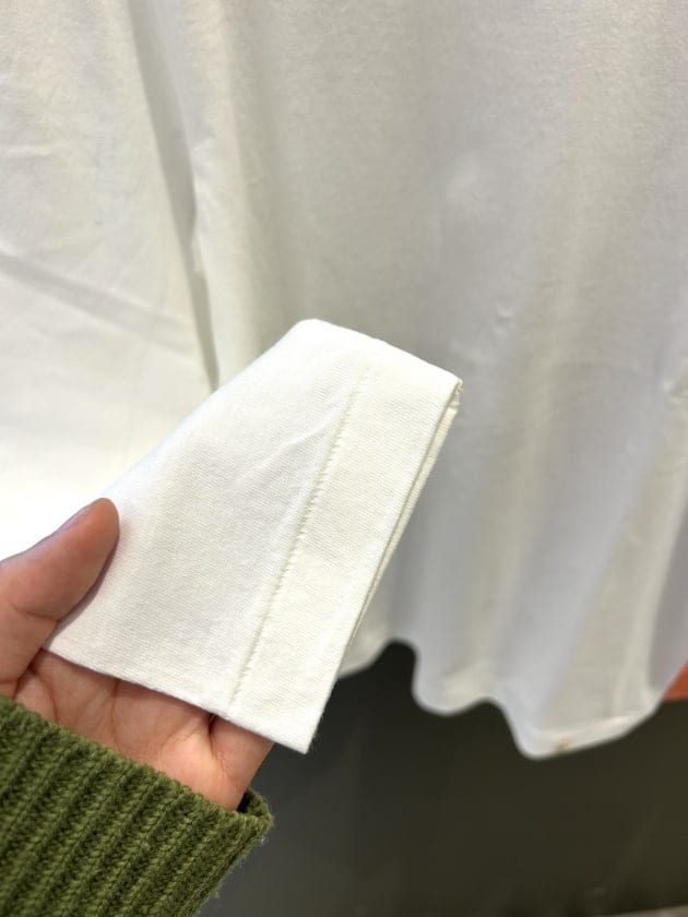 袖にリブがしっかり入っていると男の子っぽい雰囲気になりすぎるので、個人的にこの裾タイプです。