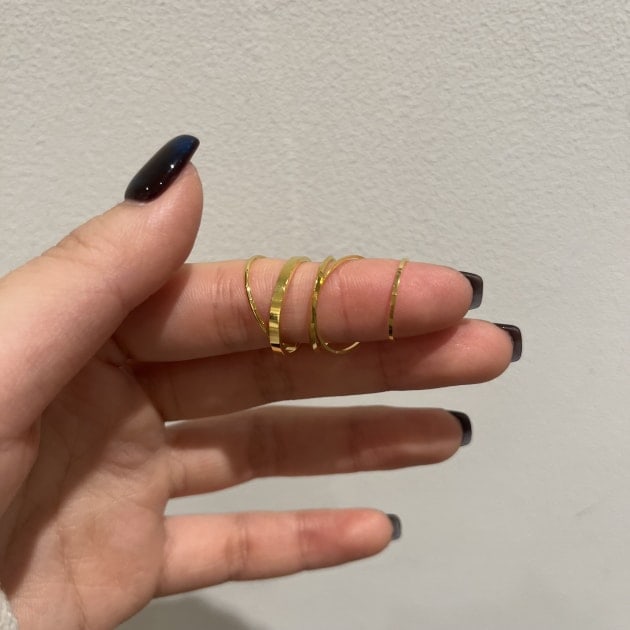 私は指の付け根がむちむちなのでギリギリですが、5本指に着用ができるリングです。