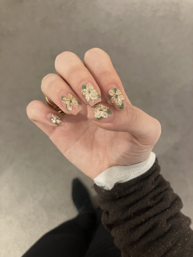今月は自身の誕生日だったので、いつものネイルも少し華やかにしてみました♡