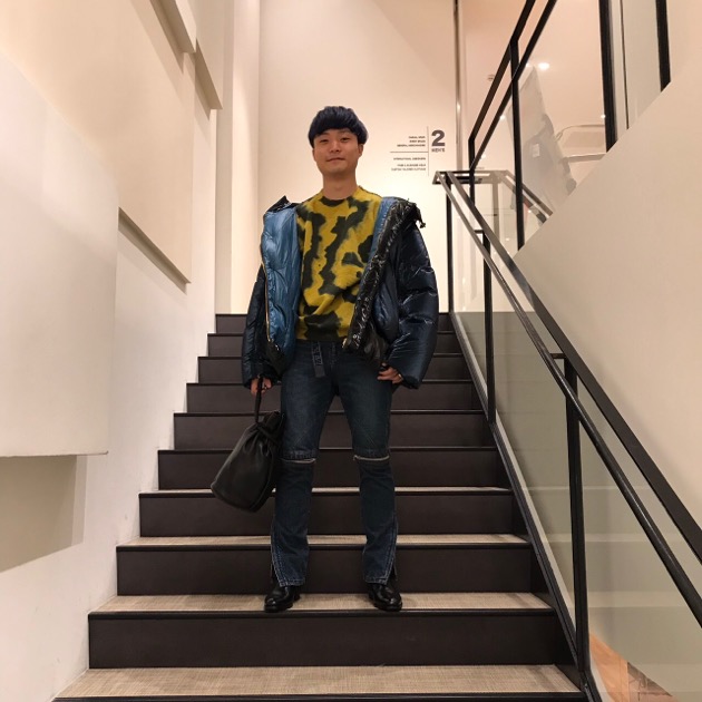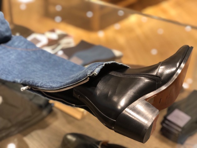 個人的にもすごく好きなスタイリングで、sacaiのデニムの裾をジップでフレアにし、ヒールブーツを履いているところもポイントだと思います。