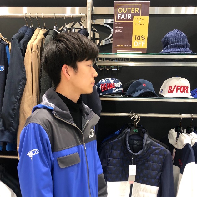 アウターフェア開催中! 2018.11.17 こんにちは、塚田です!!!気温もぐっと下がり、冬もすぐそこですね!本格的に寒くなる前にアウターを手に入れるチャンスです!ビームス ゴルフではアウターフェアを開催中!!11月25日まで、対象商品がなんと10%オフ!!カッコよく、機能性の優れたアウターを取り揃えております!!メンズもレディースもお値下げしておりますので是非お店まで遊びに来てください!お待ちしております!