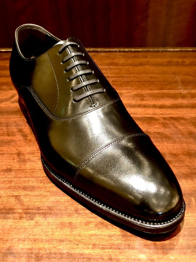 フランス高級レザータンナーANNONEY社ボックスカーフ使用し、既製靴では考えられない手間暇をかけて作られた逸品ですよ。